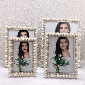 High Quality Metal Photo Frame Pearl European Home Ornament Table Decor Embellished Fashion Bedside Table Living Room Kids Adult (Color: Sliver, size: 6 inch)