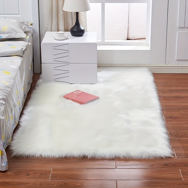 Home > 1pc Fluffy Imitation Wool Area Rug, Suede Fleece Bottom Long Imitation Wool Rug, Acrylic 80% Polyester 20%, 2.36inch Long Wool, Living Room Bedroom Ru
