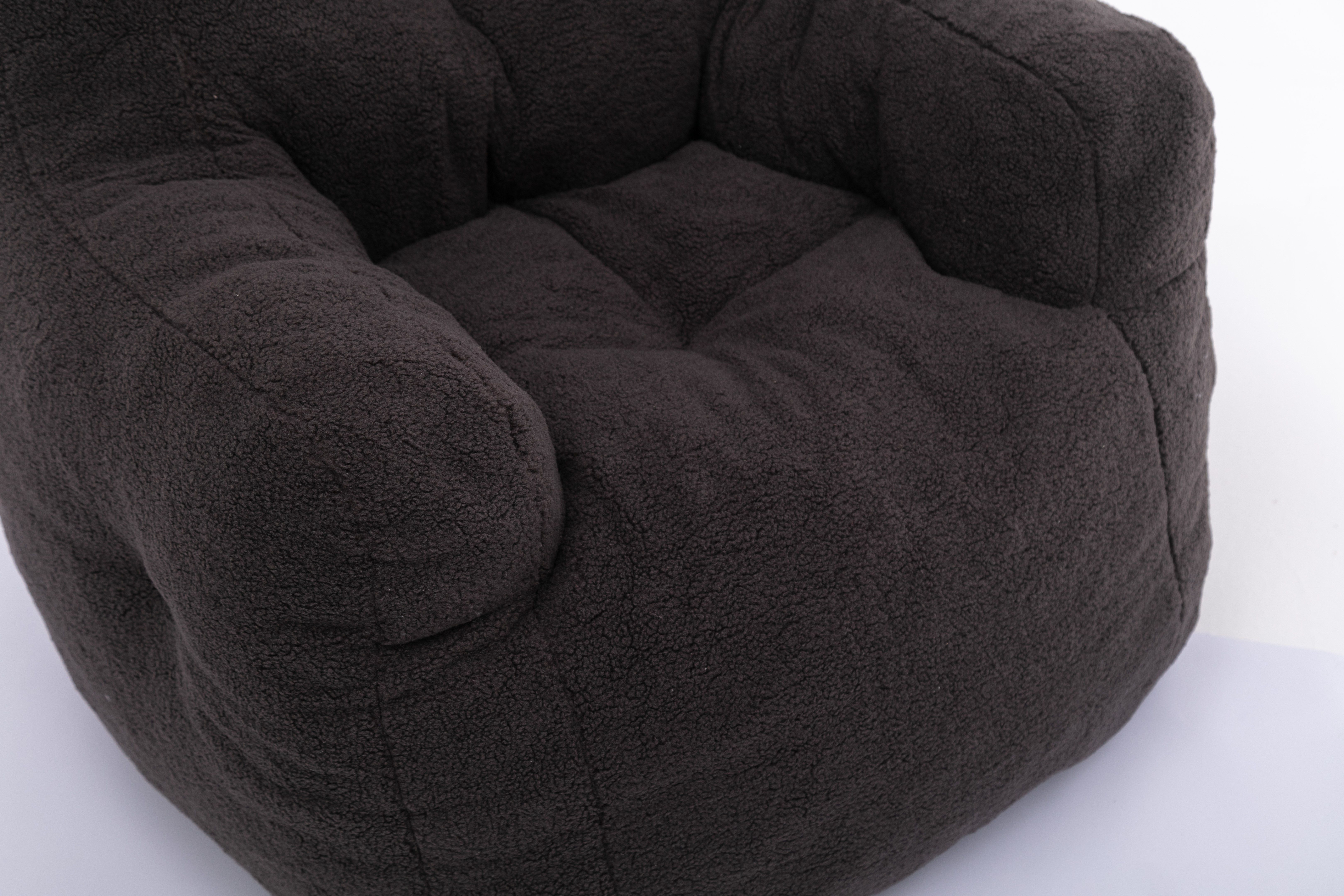 Soft Tufted Foam Bean Bag Chair With Teddy Fabric Dark Gray