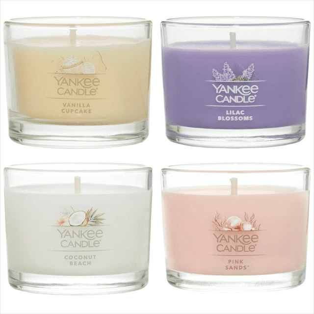 Yankee candle signature votive mini candle jar sweet serenity variety pack, 1 vanilla cupcake, 1 lilac blossom, 1 coconut beach, 1 pink sands, 1.3 oz each (pack of 4)